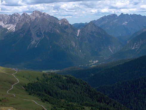 | ...vista sul passo di Cima Vallona... | ...strada delle malghe e la Val Visdende... |