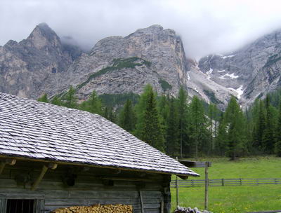 | ...sullo sfondo la "Croda del Becco" che troneggia per buona parte del percorso... | ...decidiamo per il giro "antiorario" verso destra dietro l'albergo... |