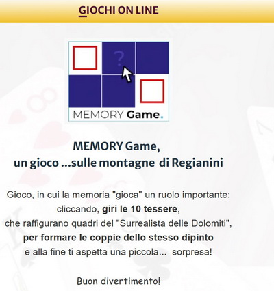 il gioco "Le montagne di Regianini"... ...dal sito: ..... https://museoregianinisurrealismo.it/games.php ...una creazione di Pino Bertorelli. cliccare sull'immagine>>>> |