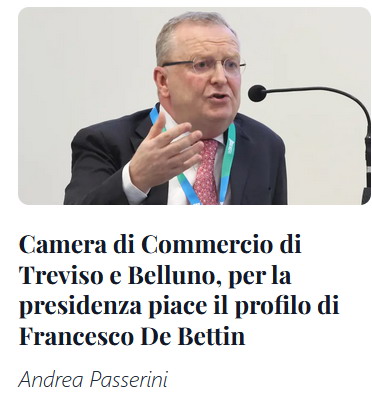 Dal "Corriere delle Alpi" del 25 gennaio 2026 >>> Da "Il Gazzettino" del 25 gennaio 2026: Camera di Commercio, Francesco De Bettin verso la guida al posto di Pozza. ************* Così si legge dai giornali. Una candidatura di prestigio per il nostro Francesco, naturalmente facciamo il tifo per lui. |