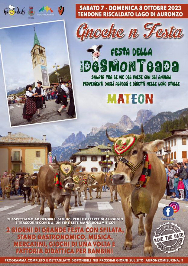 Abbiamo seguito ad Auronzo la giornata di domenica 8 ottobre 2023 “Gnoche in Festa” ("i gnoche" così simpaticamente vengono chiamati gli Auronzani) con la “Desmonteada”.