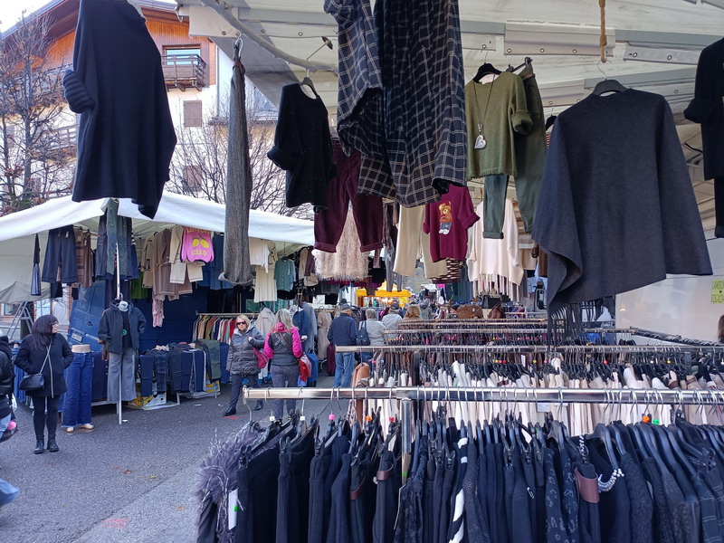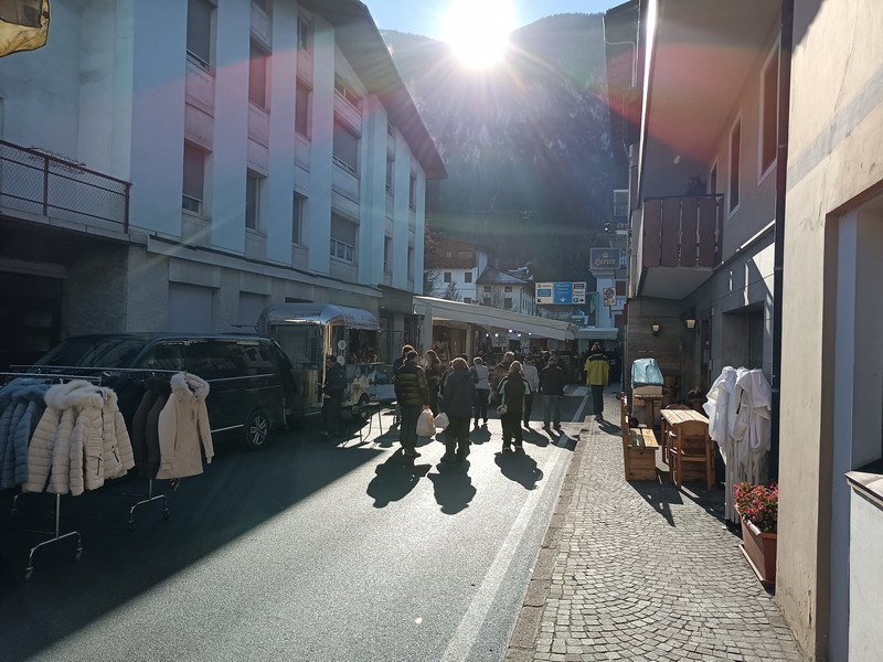 Con alcune immagini documentiamo la mattinata, il commento è quello di questi tempi: mercanzia ... quella classica delle fiere, ...abbigliamento,...per la casa, castagne e dolci e sempre la fila davanti ai furgoni che distribuiscono panini caldi ecc..