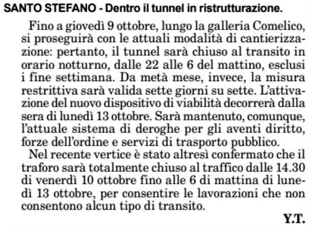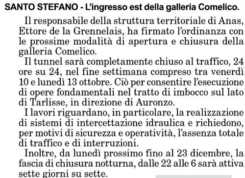 Anche il nuovo numero dell' "Amico del Popolo" ci aggiorna sugli orari di chiusura della "Galleria Comelico".