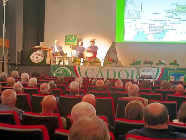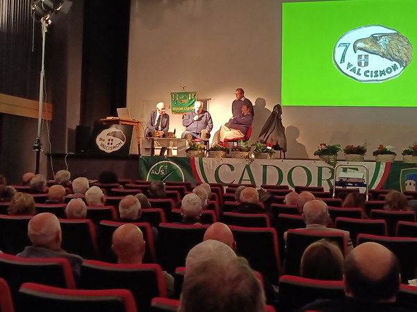| sabato 4 ottobre 2025 Serata molto interessante quella di giovedì pomeriggio nella sala del cinema Piave. Partecipata e attenta dai numerosi convenuti. Moderatore Nicola Sergio Stefani che è il commentatore delle adunate nazionali degli alpini, il Generale di Corpo d'Armata Bruno Petti che per il suo ruolo e stato il pricipale illustratore delle vicende del Battaglione Val Cismon nella Campagna di Russia e dell'editore e studioso della materia Aviani che ha portato alla stampa il libro "Trincee di ghiaccio" di Adriano Vieceli. Sono intervenuti il Sindaco di S.Stefano, Paolo Tonon studioso delle vicende militari che interessano il nostro territorio e i dirigenti dei gruppi alpini locali. Il libro colma un "silenzio" sulla storia del "Val Cismon" che mancava e che era di stanza nella caserma di S.Stefano. Una presenza che si ricorda per la partecipazione in tutti sensi nella vita della Comunità Comeliana. |