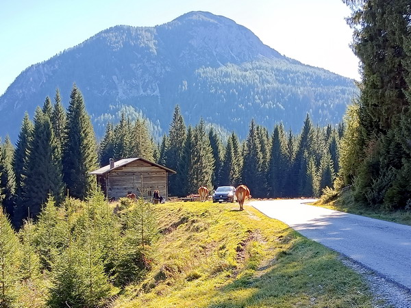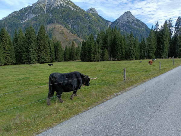 Ultimo bestiame al pascolo in Val Visdende, scese dai pascoli alti adesso soggiornano in valle anche le Highlands scozzesi.