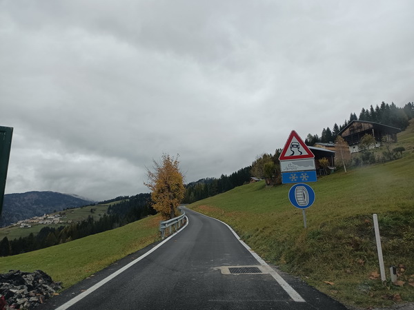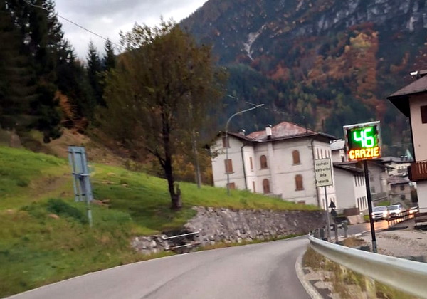 all'inizio del paese, per chi proviene dal passo, un rilevatore ellettronico luminoso di velocità, anche simpaticamente ringrazia se si sta sotto i 50km ora, invita alla prudenza se si supera. Ha il suo effetto, si tende a mettersi in regola quando si presenta l'invito a moderare la velocità.