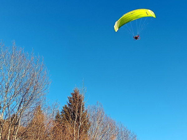 | Lunedì 2 febbraio 2026 Ieri ancora una giornata stupenda, soleggiata. Frequentata la passeggiata sulla strada per Costalta e allora abbiamo colto una panoramica verso est. Volteggiava sopra le nostre teste il navigatore con paramotore. |