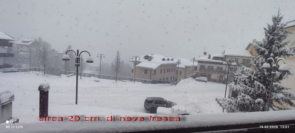 | Giovedì 19 febbraio 2026 Nevica...vedremo gli sviluppi nel corso del giorno. ***** La giornata si chiude con neve molto pesante e circa 40 cm.. Domani ci saranno tanti spazi da sistemare ma le strade sono percorribili. |
