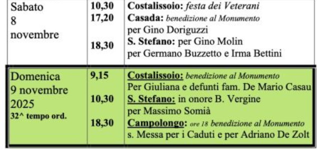 interparrocchiale. ...domenica S.Messa in cimitero a Costalissoio ore 9.00 |