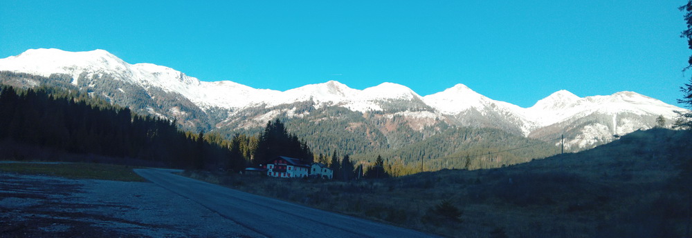 novembre 2025 Giornata che si apre uggiosa e con pioviggine ma con il pomeriggio in peggioramento e neve in abbassamento a quota 1800. Abbiamo avuto giornate sostanzialmente buone, fredde al mattino e sera ma gradevoli con il sole. Abbiamo visto scendere, ieri pomeriggio, dalle escursioni in quota, comitive organizzate, come si vede dall'immagine le nostre creste di confine (quota 2.300) non sono innevate. |